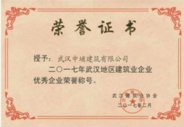2017年武汉地区建筑企业优秀企业荣誉称号